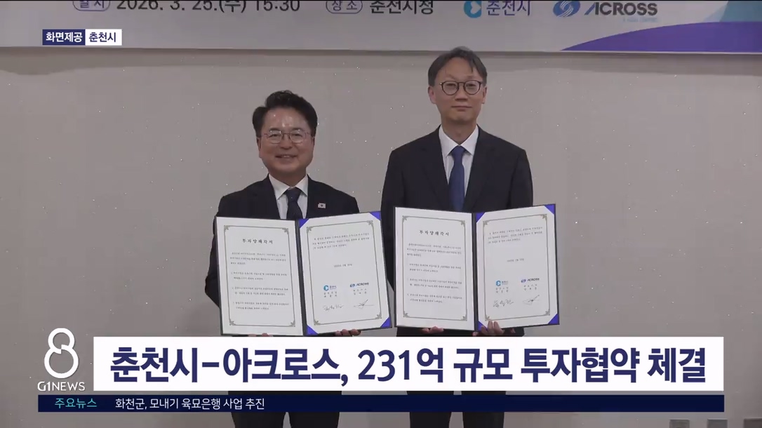 춘천시가 거두산업단지 내 의료용 제품 제조기업 아크로스와 오늘(25일) 231억 원 규모의 투자협약을 맺었습니다.
