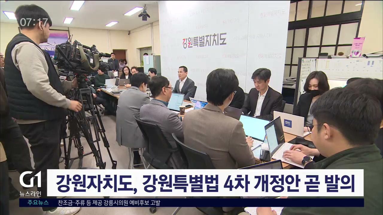 김진태 지사는 어제(30일) 열린 도청 기자 간담회에서 "강원특별법 4차 개정안 발의를 위해 국회의원들과 협의 중"이라고 밝혔습니다.