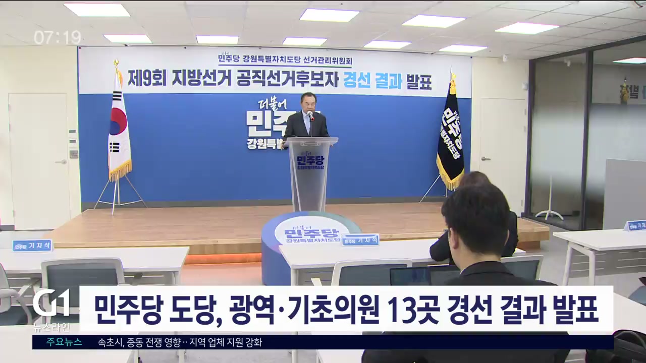 더불어민주당 강원자치도당이 지방선거 광역과 기초의원 후보자 경선 결과를 발표했습니다.