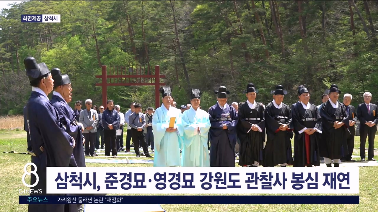 삼척시가 오늘(20일) 국가지정 사적인 준경묘와 영경묘 일원에서 강원도 관찰사 봉심 재연 행사와 쳥명제를 개최했습니다.