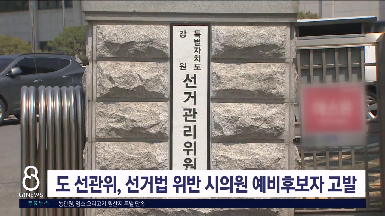 강원자치도 선거관리위원회가 공직선거법 위반 혐의로 시의원 선거 예비후보자를 경찰에 고발했습니다.