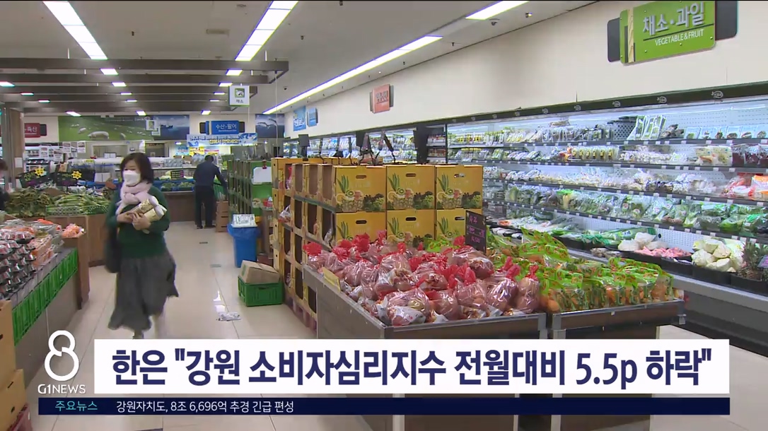 한국은행 강원본부는 이달 강원지역 소비자심리지수가 99.3으로 전월대비 5.5p 하락했다고 밝혔습니다.