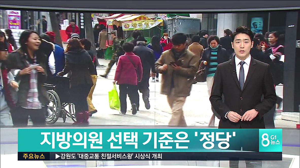 지방의원을 선택할 때 인물 됨됨이나 지역에 대한 기여 정도는 상관없이 어느 정당에서 공천을 받았느냐가 가장 중요한 선택 기준이 되고 있는 겁니다.