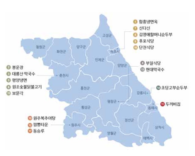 이 40여 노포 중 사전 조사와 현장 방문 및 인터뷰 등을 통해 강원학연구센터가 최종 17곳을 선정했습니다.