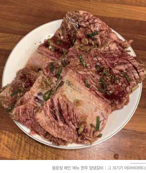 그제야 정신을 차리고 간판을 보면 ‘봉운장’이라는 이름과 바로 아래에 ‘갈비’라는 글씨가 눈에 들어옵니다.