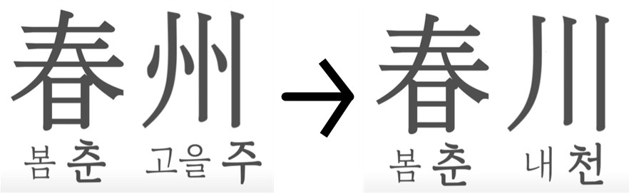 춘천은 한자로 봄 춘(春)에 내 천(川)자로 돼 있습니다.