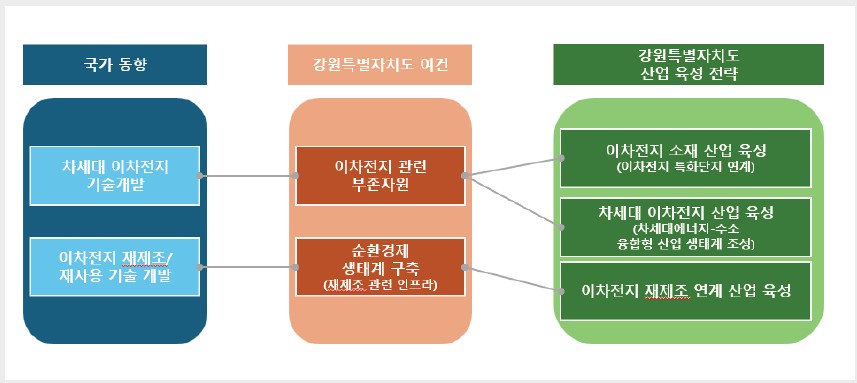 이에 발맞춰 강원특별자치도는 자치단체 차원의 대응전략으로 부존자원을 활용한 이차전지 산업 생태계 구축을 내세웠다.