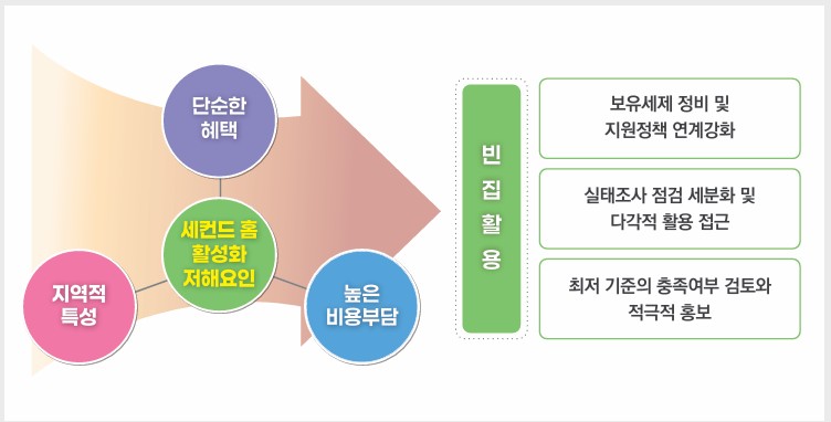 빈집 활용을 위한 정책 지원도 필요하다. 실주거 목적으로 빈집 활용 시 철거비와 리모델링 및 재건축비에 대한 저리 금융 지원도 적극 고려돼야 한다.