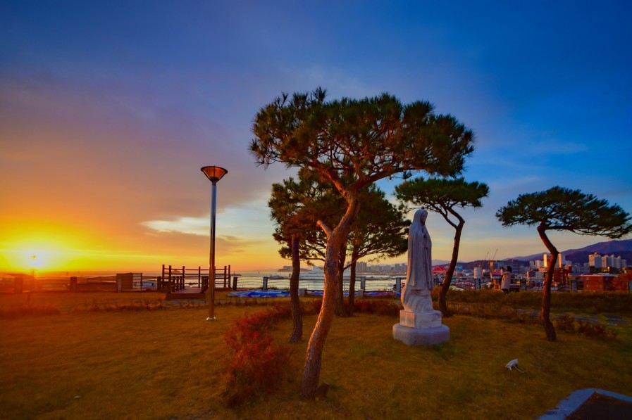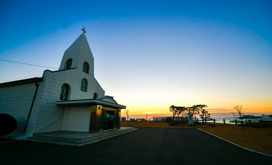 속초 동명동 성당은 누구나 아름다운 일출을 감상하고 사진을 남길 수 있는 명소로 사랑받고 있다. 동시에 언덕 위에서 바다를 굽어보는 이 하얀 성당의 발자취를 헤아려 본다면 그 풍경은 사뭇 다르게 다가올 것이다.