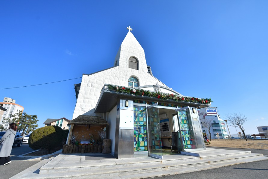 속초 동명동의 가파른 언덕길을 오르다 보면 순백의 감성적 건물이 있다. 바로 ‘속초 동명동 성당’이다.