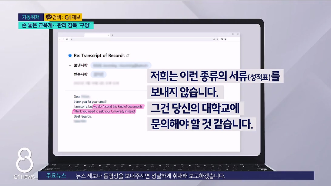 "국내 대학에서는 명확한 기준이 없으니, 학생이 제출한 위조 성적표를 원본으로 믿을 수 밖에 없는 상황입니다."