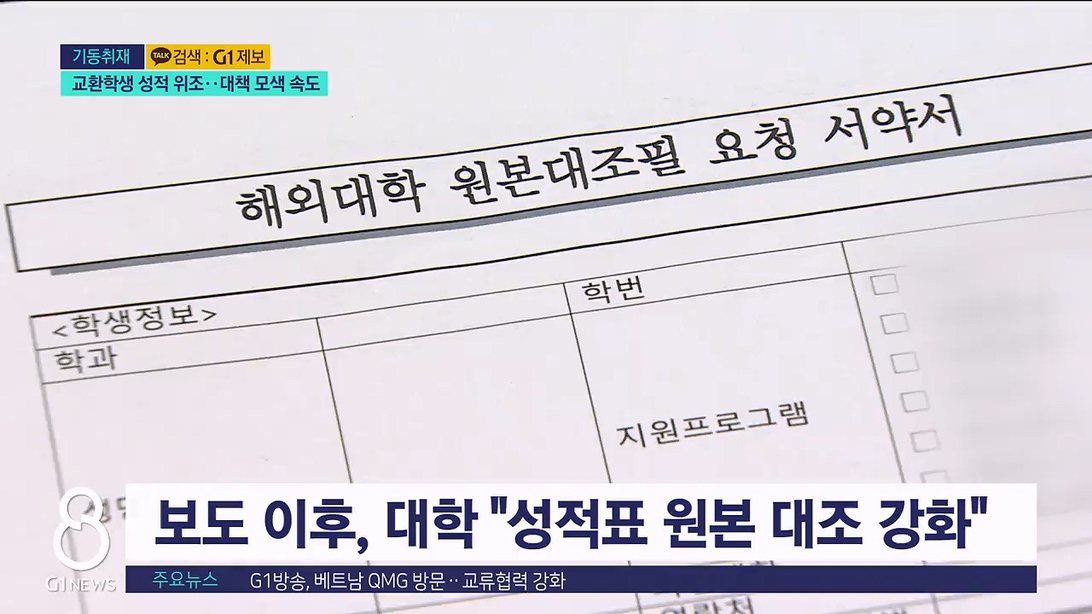 G1뉴스에서는 지난주 해외파견 교환학생 사이에서 만연한 성적 위조 문제를 집중 보도해 드렸는데요.