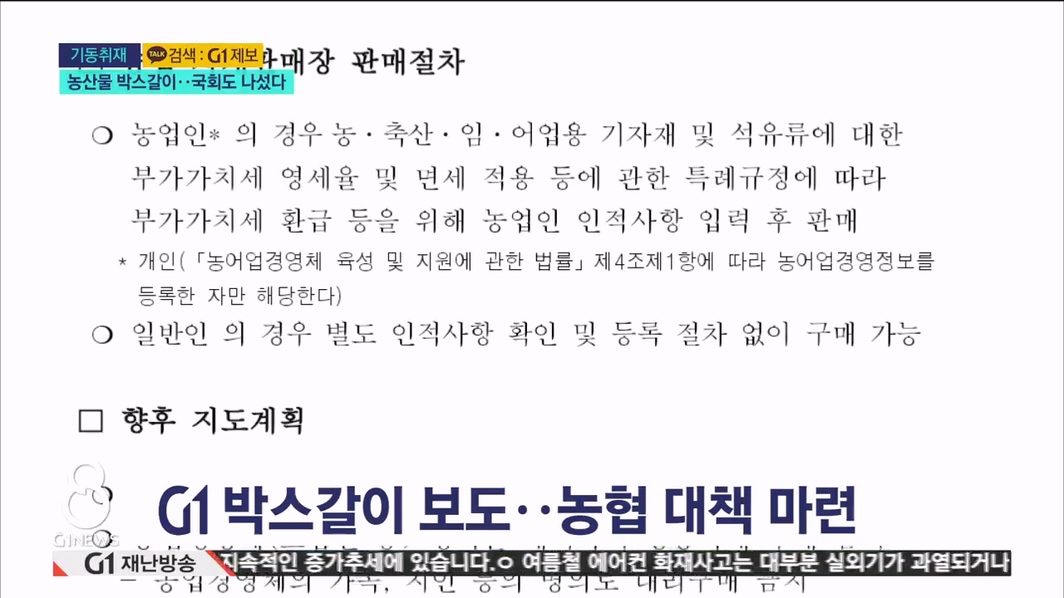 전국 농협마다 농특산물 박스 판매 기준이 허술해 일부 농협에서 박스갈이가 발생했다는 G1 보도 이후,